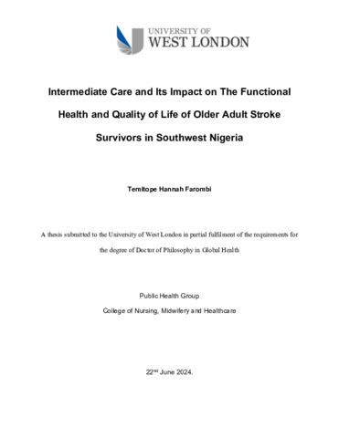 Farombi, Temitope Hannah (2024) Intermediate Care and Its Impact on The Functional Health and Quality of Life of Older Adult Stroke Survivors in Southwest Nigeria. Doctoral thesis, University of West London.