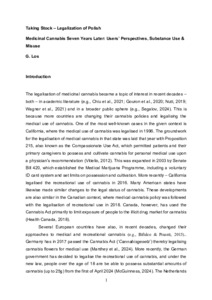 Los, Greg (2024) Taking Stock – Legalization of Polish Medicinal Cannabis Seven Years Later: Users’ Perspectives, Substance Use & Misuse. Substance Use & Misuse.