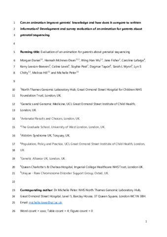 McInnes-Dean H, Mellis R, Daniel M, Walton H, Baple EL, Bertoli M, et al. 'Something that helped the whole picture': Experiences of parents offered rapid prenatal exome sequencing in routine clinical care in the English National Health Service. Prenat Diagn. 2024;44(4):465-79.
