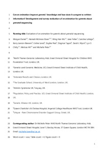 Stortz SK, Mulligan S, Snipes M, Hippman C, Shridhar NN, Stoll K, et al. A Randomized Controlled Trial on the Effect of Standardized Video Education on Prenatal Genetic Testing Choices: Uptake of Genetic Testing. Am J Perinatol. 2023;40(3):267-73.