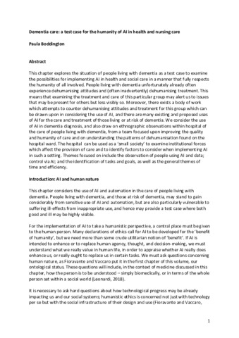 Boddington, P., Featherstone, K., & Northcott, A. (2021). Presentation of the clothed self on the hospital ward: an ethnographic account of perceptual attention and implications for the personhood of people living with dementia. Medical Humanities, 47(2), e3-e3.