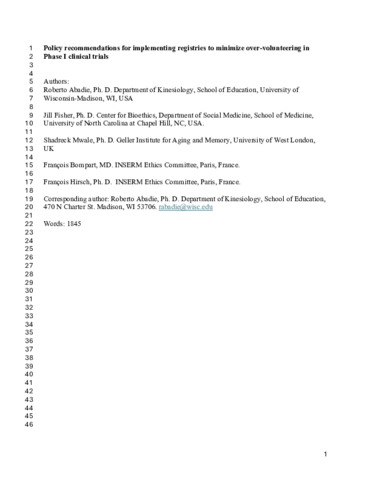 Policy recommendations for implementing registries to minimize over-volunteering in Phase.