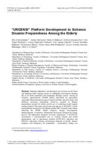 Surabaya, Indonesia’s second-largest city, lies between the Waru and Surabaya faults, making it prone to earthquakes and frequent flooding due to its dense population and inadequate drainage system. Among its residents, approximately 350,000 elderly individuals are particularly vulnerable during disasters because of limited mobility, physical frailty, and difficulty accessing information. However, research on disaster preparedness among the elderly and the use of technology-based support remains limited. This study aimed to develop and test “URGENSI”, a web-based platform designed for the elderly around UPN “Veteran” Jawa Timur, following the ADDIE Model (Analysis, Design, Development, Implementation, Evaluation). Stakeholder discussions informed the design process. The application integrates two main components: 1) KESTANA Assessment, a self-assessment tool to evaluate disaster and health preparedness, and 2) educational modules (KESTANA education and KITANA education) offering self-learning materials on health, disaster readiness and emergency kit preparation. Functionality testing was conducted with 25 elderly participants living near UPN “Veteran” Jawa Timur. Results showed most respondents were neither healthy nor resilient when facing disasters. Nevertheless, participants rated the application as user-friendly, visually engaging, and easy to understand. Overall, URGENSI demonstrates strong potential to enhance disaster preparedness, support elderly health, and contribute to broader disaster risk reduction and community resilience efforts in Indonesia.