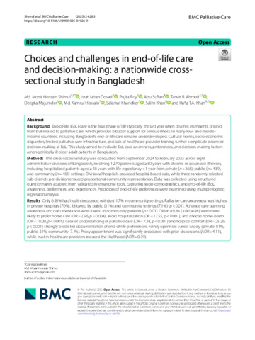 Choices and challenges in end-of-life care and decision-making: a nationwide cross-sectional study in Bangladesh.
