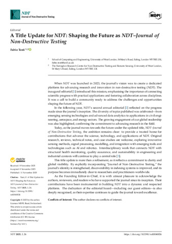 A title update for NDT: shaping the future as NDT–journal of non-destructive testing.