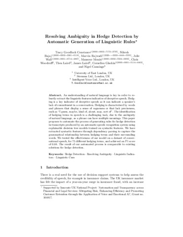 Resolving Ambiguity in Hedge Detection_WallJ_accessible.pdf - Accepted Version Available under License Creative Commons Attribution. Download (210kB) | Preview |