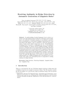 Resolving ambiguity in Hedge detection by Automatic Generation of linguistic rules.