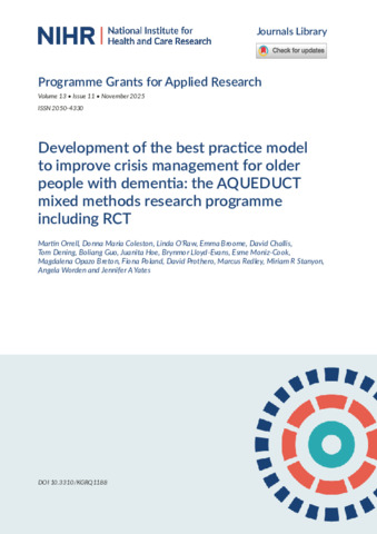| Additional Information: | NIHR Programme Grants for Applied Research Report: Achieving Quality and Effectiveness in Dementia Using Crisis Teams (AQUEDUCT) programme. |