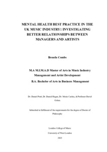 Combs, Brenda (2025) Mental health best practice in the UK music industry: investigating better relationships between managers and artists. Doctoral thesis, University of West London.