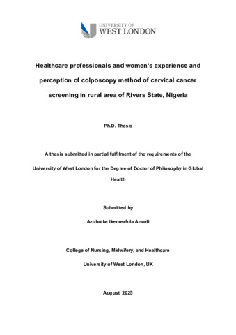 Ikemeafula Amadi, Azubulke (2025) Healthcare professionals and women's experience and perception of colposcopy method of cervical cancer screening in rural area of Rivers State, Nigeria. Doctoral thesis, University of West London.