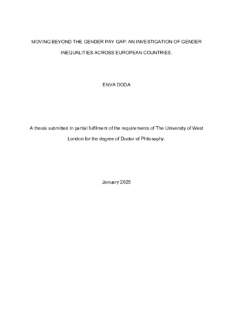 Doda, Enva (2025) Moving beyond the gender pay gap: an investigation of gender inequalities across European countries. Doctoral thesis, University of West London.