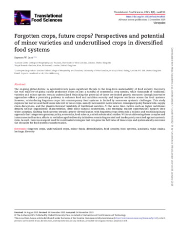 Lara, Szymon Wojciech (2025) Forgotten crops, future crops? Perspectives and potential of minor varieties and underutilised crops in diversified food systems. Translational Food Sciences, 1 (1).