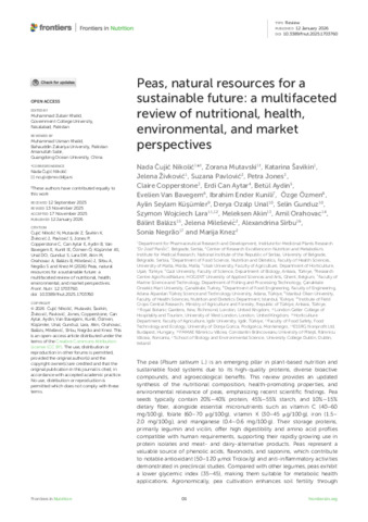 Nikolic, Nada Cujic, Mutavski, Zorona, Knez, Marija, Savilkin, Katarina, Živkovic, Jelena, Van Bavegem, Evelien, Can Aytar, Erdi, Aydın, Betül, Jones, Petra, Ender Künili, İbrahim, Ozmen, Ozge, Seylam Kusumler, Aylin, Pavlovic, Suzana, Ozalp Unal, Derya, Gunduz, Selin, Copperstone, Claire, Lara, Szymon Wojciech, Akin, Meleksen, Orahovac, Amil, Balazs, Balint, Milesevic, Jelena, Sirbu, Alexandrina and Negrao, Sonia (2026) Peas, natural resources for a sustainable future: a multifaceted review of nutritional, health, environmental, and market perspectives. Frontiers in Nutrition. (In Press)