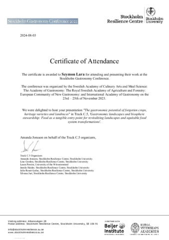 Lara, Szymon Wojciech (2023) The gastronomic potential of forgotten crops, heritage varieties and landraces. In: Stockholm Gastronomy Conference 2023: Gastronomy Research and Policy Studies - The State of the Art, 23-25 Nov 2023, Stockholm, Sweden. (Submitted)