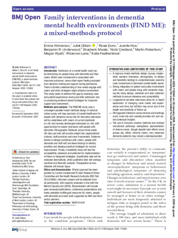 Family interventions in dementia mental health environments (FIND ME)_GillamJ_VoR_PDFA.pdf - Published Version Available under License Creative Commons Attribution. Download (406kB) | Preview |