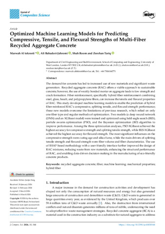 Optimized Machine Learning Models for Predicting Compressive, Tensile, and Flexural Strengths of Multi-Fiber Recycled Aggregate Concrete.