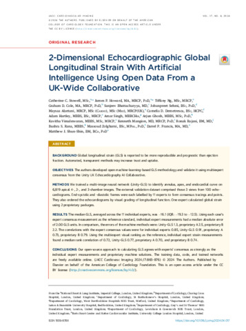 2-dimensional echocardiographic Global Longitudinal Strain with Artificial Intelligence using Open Data from a UK-wide collaborative.
