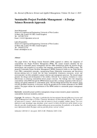 | Keywords: | sustainable project portfolio management, design science research, project materiality, sustainability disclosure standards, analytics |