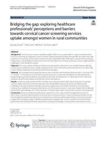 Bridging the gap: exploring healthcare professionals' perceptions and barriers towards cervical cancer screening services uptake amongst women in rural communities.