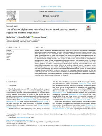 Dinc, Linda, Rybski, Daniel and Dineen, Jessica (2025) The effects of alpha / theta neurofeedback on mood, anxiety, emotion regulation and trait impulsivity. Brain Research, 1866 (149943).