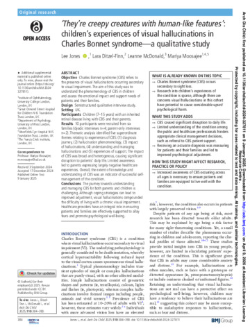 Conclusions The journey towards understanding and managing CBS for both parents and children is challenging. Although coping strategies can lead to improved adjustment, visual hallucinations compounded the difficulty of living with a chronic visual impairment. Healthcare providers have an integral role in ensuring patients and families are effectively supported to allay fears and promote psychological well- being.