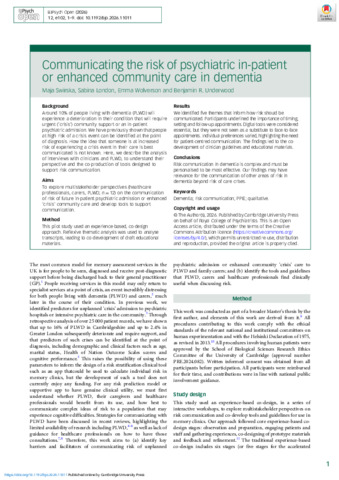 Swirska, Maja, Wolverson, Emma and Underwood, Benjamin R (2026) Communicating the risk of psychiatric in-patient or enhanced community care in dementia. BJPsych Open, 12 (3).
