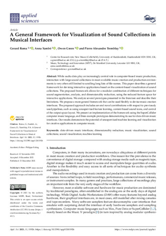Roma, Gerard, Xambo, A., Green, O and Tremblay, P.A. (2021) A General Framework for Visualization of Sound Collections in Musical Interfaces. Applied Sciences, 11 (24).