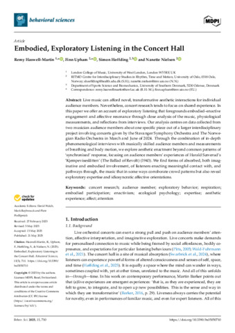 Haswell-Martin. Embodied Exploratory Listening in the Concert Hall. behavsci-15-00710-v2.pdf - Published Version Available under License Creative Commons Attribution. Download (4MB) | Preview |